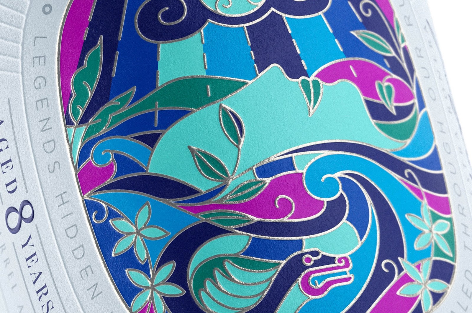 Cihuatan是一個(gè)來自薩爾瓦多的特制朗姆酒品牌。在納瓦特方言中,“Cihuatán”的意思是“女神熟睡的土地”。通過插圖刻畫鮮花綻放過程中的力量和美麗,通過女神睡顏表達(dá)女神的繁衍生息的力量。在工藝上“女神”的輪廓運(yùn)用燙銀和凸紋的技術(shù),讓畫面有了些許立體感,增強(qiáng)畫面層次。色彩上,采用當(dāng)?shù)靥赜械呐屠渖钆浞绞剑屛幕姆柛由钊肴诵摹?/span>