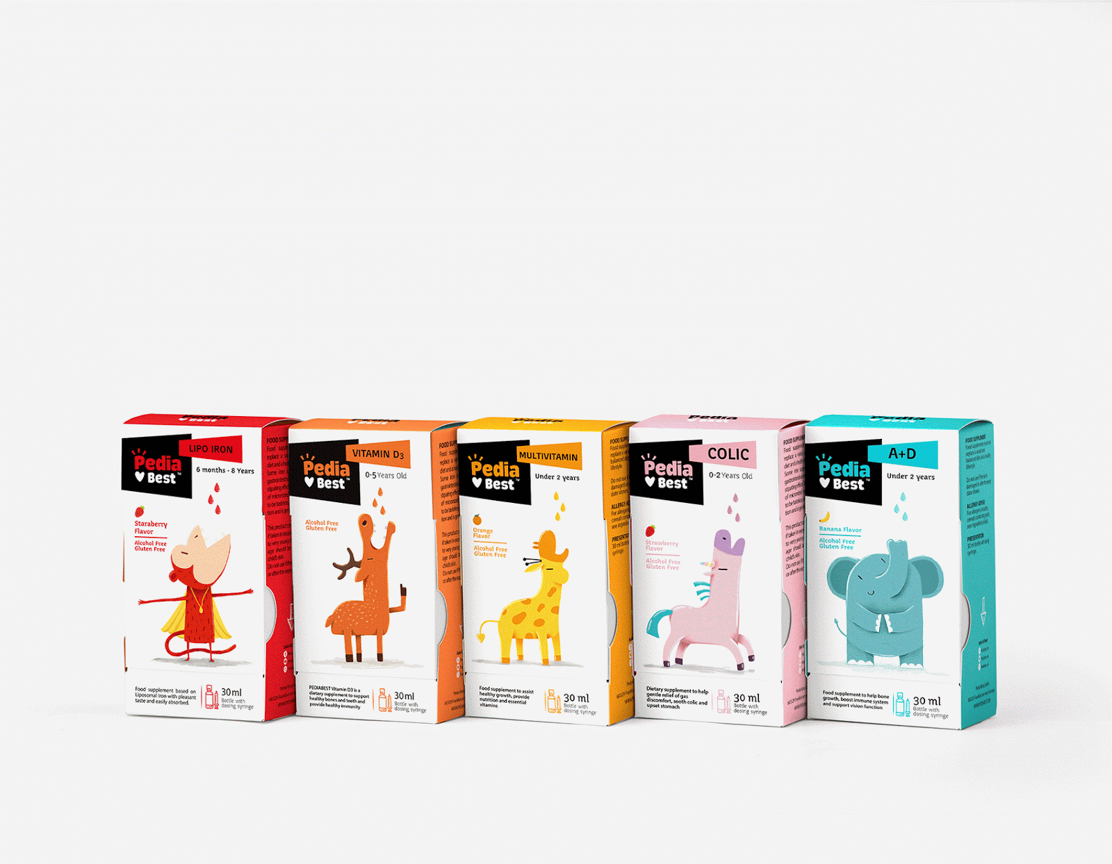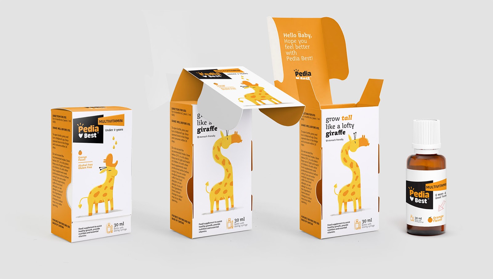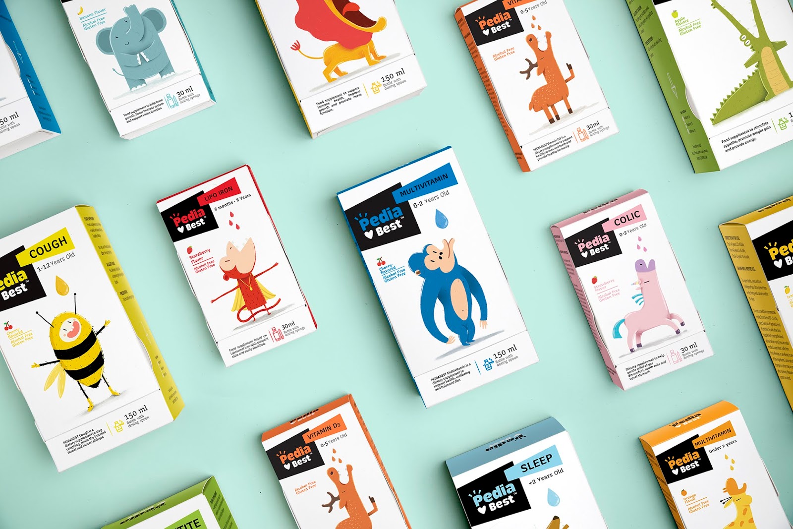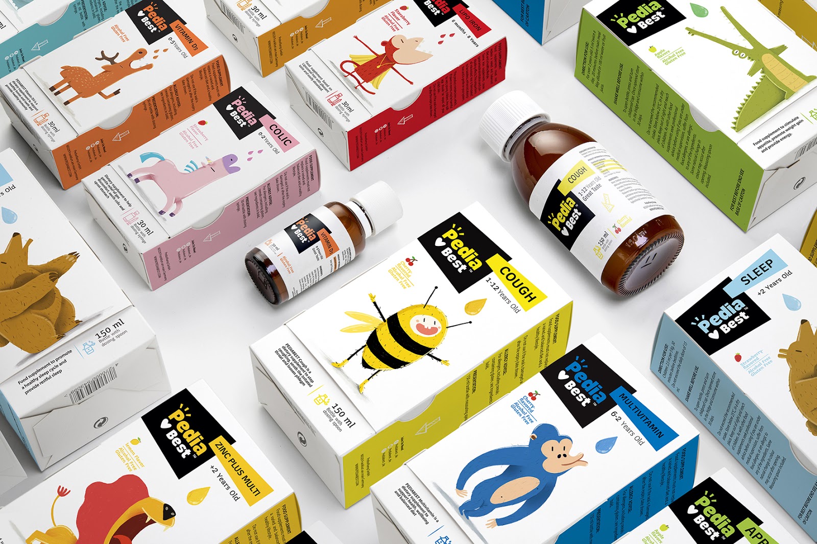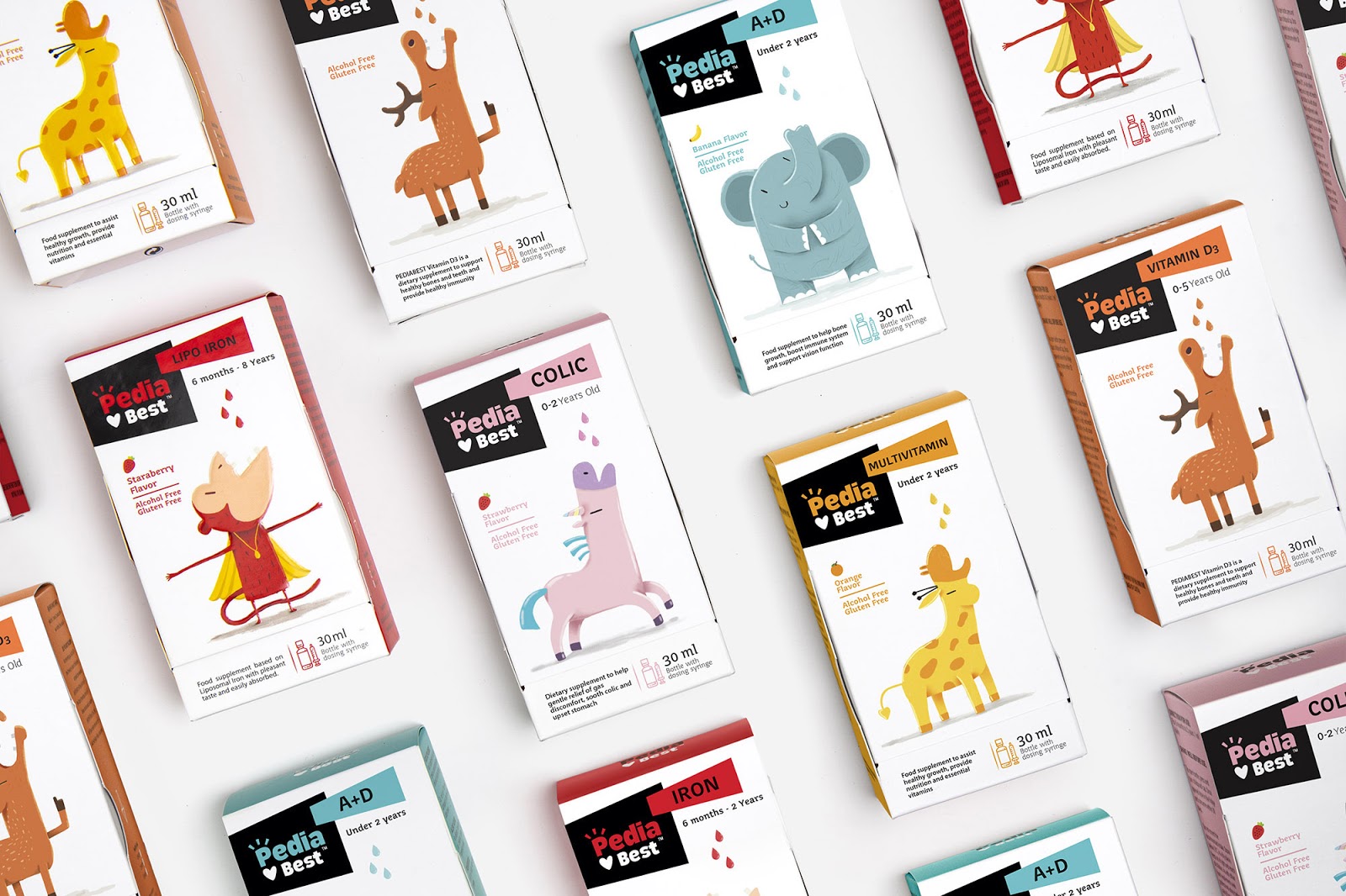 給嬰幼兒喂藥絕對是媽媽們頭疼的一件事情,通常的方法一般是:“讓我看看你的牙齒”,“張開你的嘴!飛機要來了!”,但是往往并不奏效。DEEEZ.CO設(shè)計的包裝盒可以講故事,根據(jù)每款產(chǎn)品的適應(yīng)癥,動物們急切地張著嘴要喝糖水。包裝講述有趣的故事。使孩子產(chǎn)生一種渴望和好奇的感覺,并在服藥時使他們愉悅。